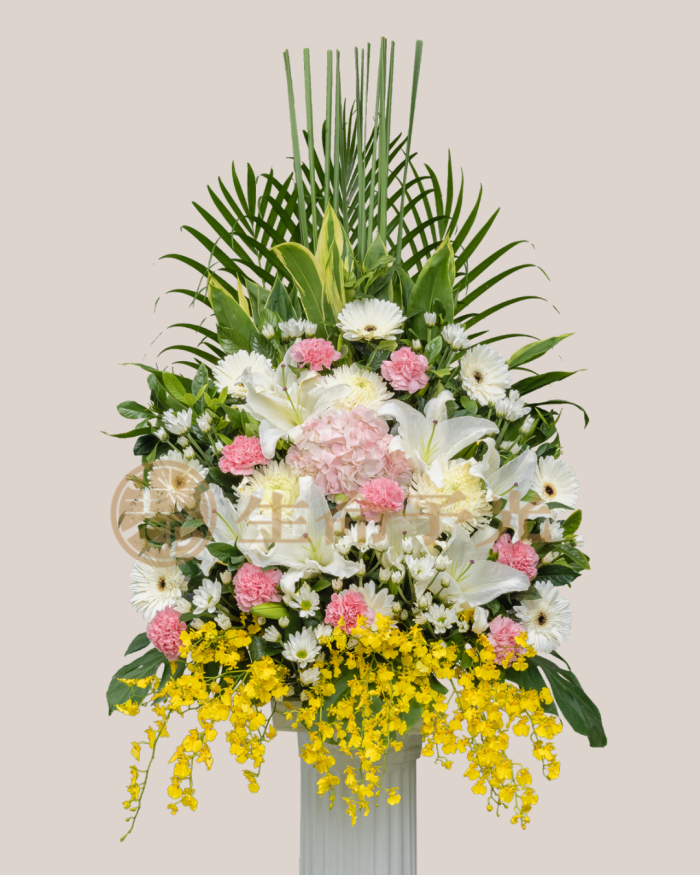 我們提供全台配送花禮服務,專營高架花籃、靈堂花籃、告別式花籃與各式追思會花籃,款式涵蓋白色高架花籃、白百合花籃、粉色系喪禮花籃等熱門選擇。