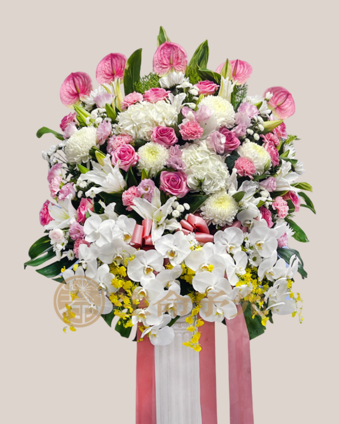 我們提供全台配送花禮服務,專營高架花籃、靈堂花籃、告別式花籃與各式追思會花籃,款式涵蓋白色高架花籃、白百合花籃、粉色系喪禮花籃等熱門選擇。