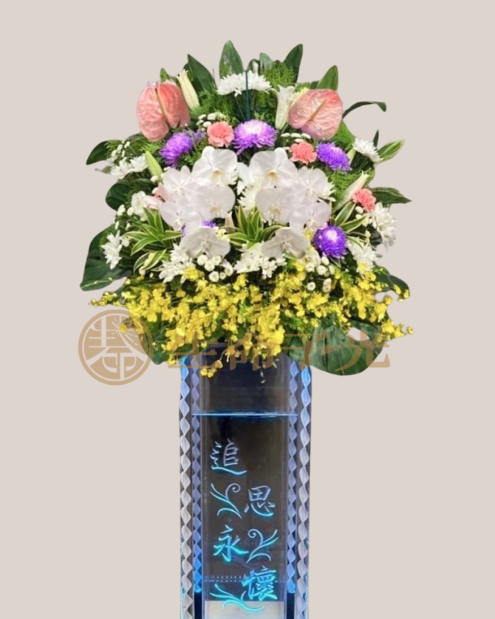 我們提供全台配送花禮服務,專營高架花籃、靈堂花籃、告別式花籃與各式追思會花籃,款式涵蓋白色高架花籃、白百合花籃、粉色系喪禮花籃等熱門選擇。