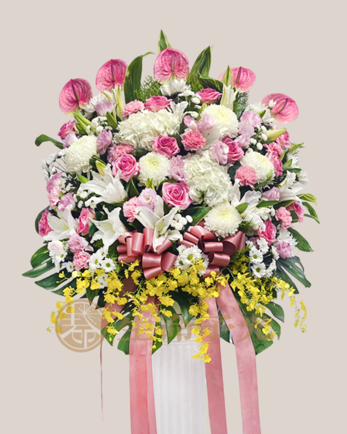 我們提供全台配送花禮服務,專營高架花籃、靈堂花籃、告別式花籃與各式追思會花籃,款式涵蓋白色高架花籃、白百合花籃、粉色系喪禮花籃等熱門選擇。