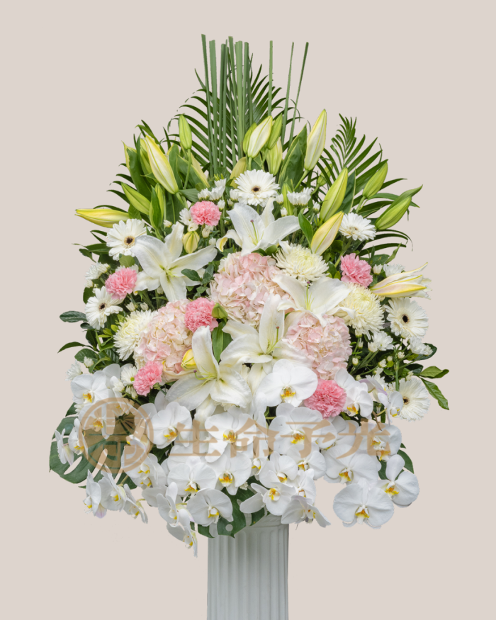 我們提供全台配送花禮服務,專營高架花籃、靈堂花籃、告別式花籃與各式追思會花籃,款式涵蓋白色高架花籃、白百合花籃、粉色系喪禮花籃等熱門選擇。
