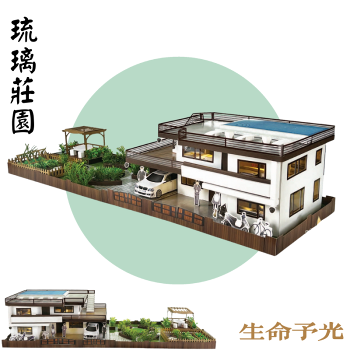此款為:紙紮琉璃莊園 ※材質:精緻紙材 ※台灣製造、品質優良可靠 ※紙紮用品附受用紙、封條 ※紙紮內容:三房二廳二衛、管家、汽車、摩托車、自行車、家犬、私人花園、露天泳池、各式家具,贈金寶盒、銀寶盒 ※紙紮尺寸:L46*W31*H36公分