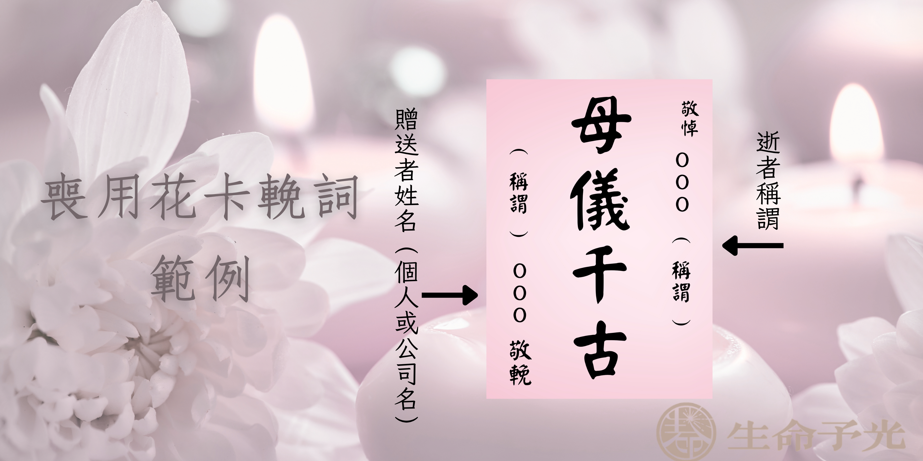 📌 可參考下方圖示填寫:逝者稱謂,例如「敬悼○○先生千古」